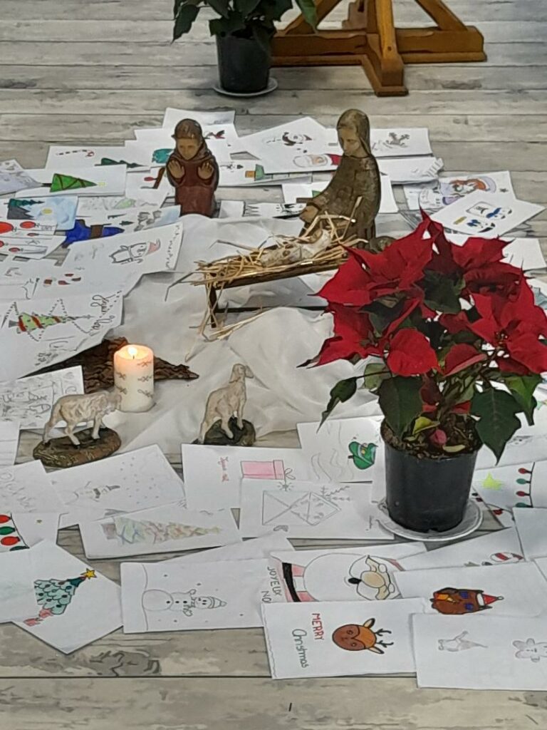Nous sommes nombreux à être rassemblés dans cette bibliothèque-chapelle de notre école pour célébrer un événement incroyable, un évènement pas croyable, un évènement pas imaginable : Dieu vient dans notre monde réel, dans notre monde concret, dans notre monde tangible. Mais il ne vient pas comme un roi puissant, ni comme un juge sévère. Non, aujourd’hui, Dieu vient comme un petit bébé, tout fragile et tout petit, couché dans une mangeoire, dans un lieu simple et pauvre.